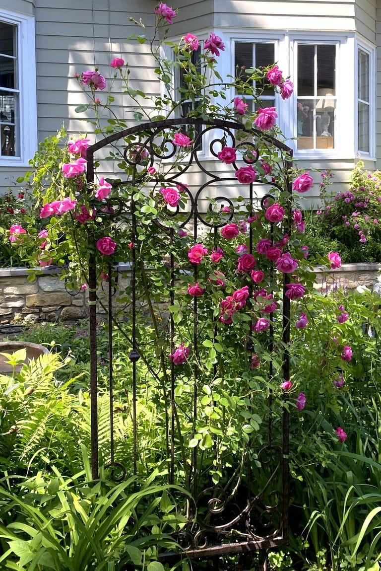The arched top and swirling scrollwork bring a touch of fairytale elegance to the garden, whether you're training climbing roses, fragrant jasmine, or even a cascade of colorful clematis.