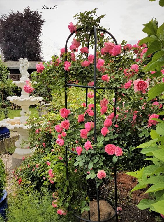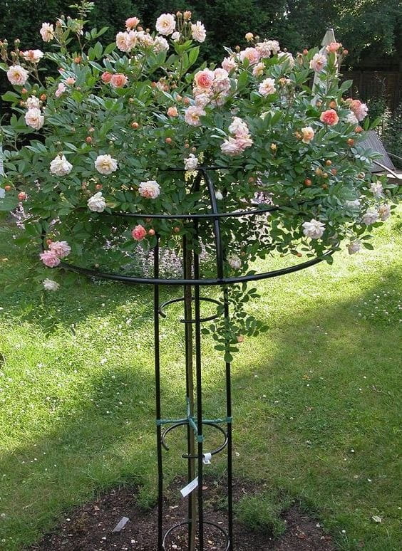 Similar to trellis obelisks, this structure makes it easier to prune, train, and care for the rose, as you can access all sides of the plant.