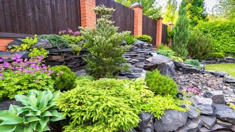 It’s easy to build a rock garden along the house fence by yourself. The materials are mostly budget-friendly, easy to find, and low-maintenance.