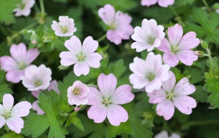 Many gardeners love Geranium Dreamland because of its unique beauty: soft pink flowers in large cup shapes with dark veins and a pale center.