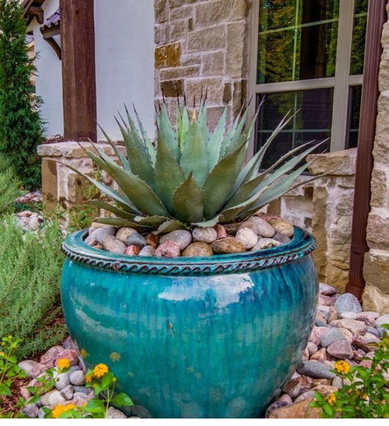 When planting agaves in pot, make sure not to water so often and that the soil is well-draining to prevent waterlogging and root rot.