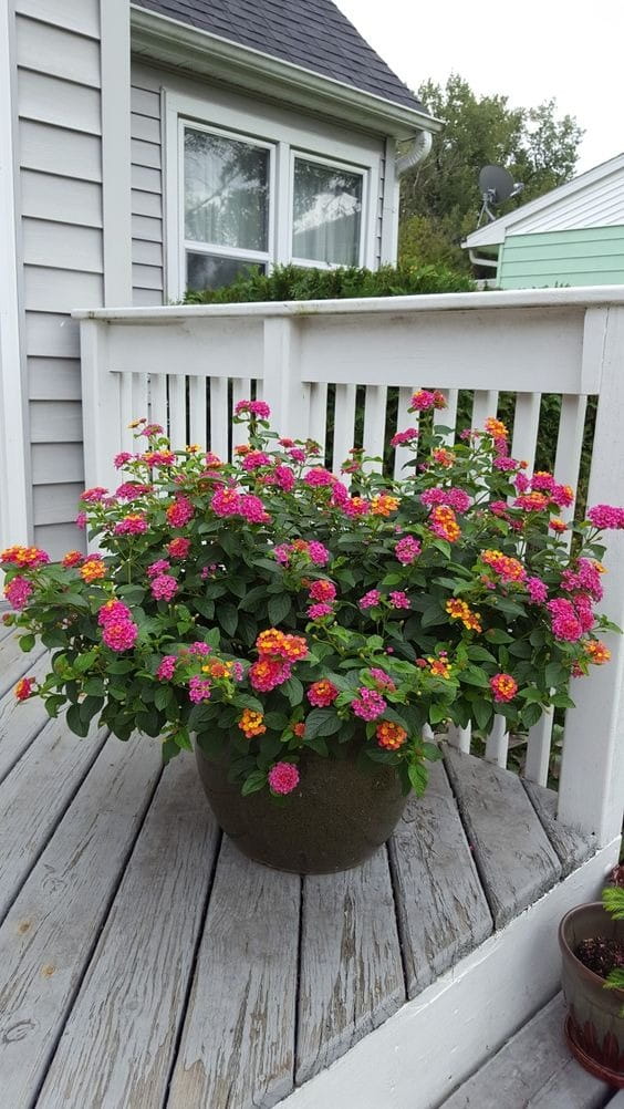 Lantana is great for large pots, especially if you choose a compact or dwarf variety.